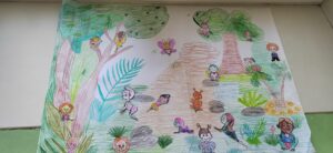 Ребенку выдается раскраска и предлагается внимательно прослушать текст, запомнить, что какого цвета, и раскрасить картинку в соответствии с описанием. Прослушай текст и запомни, какого цвета игрушки на елке (цвета в тексте выделены курсивом). Раскрась елочные украшения в соответствии с описанием.