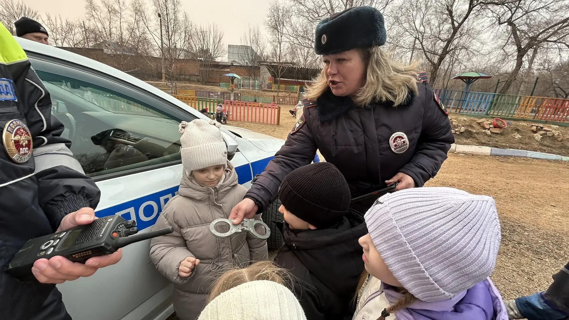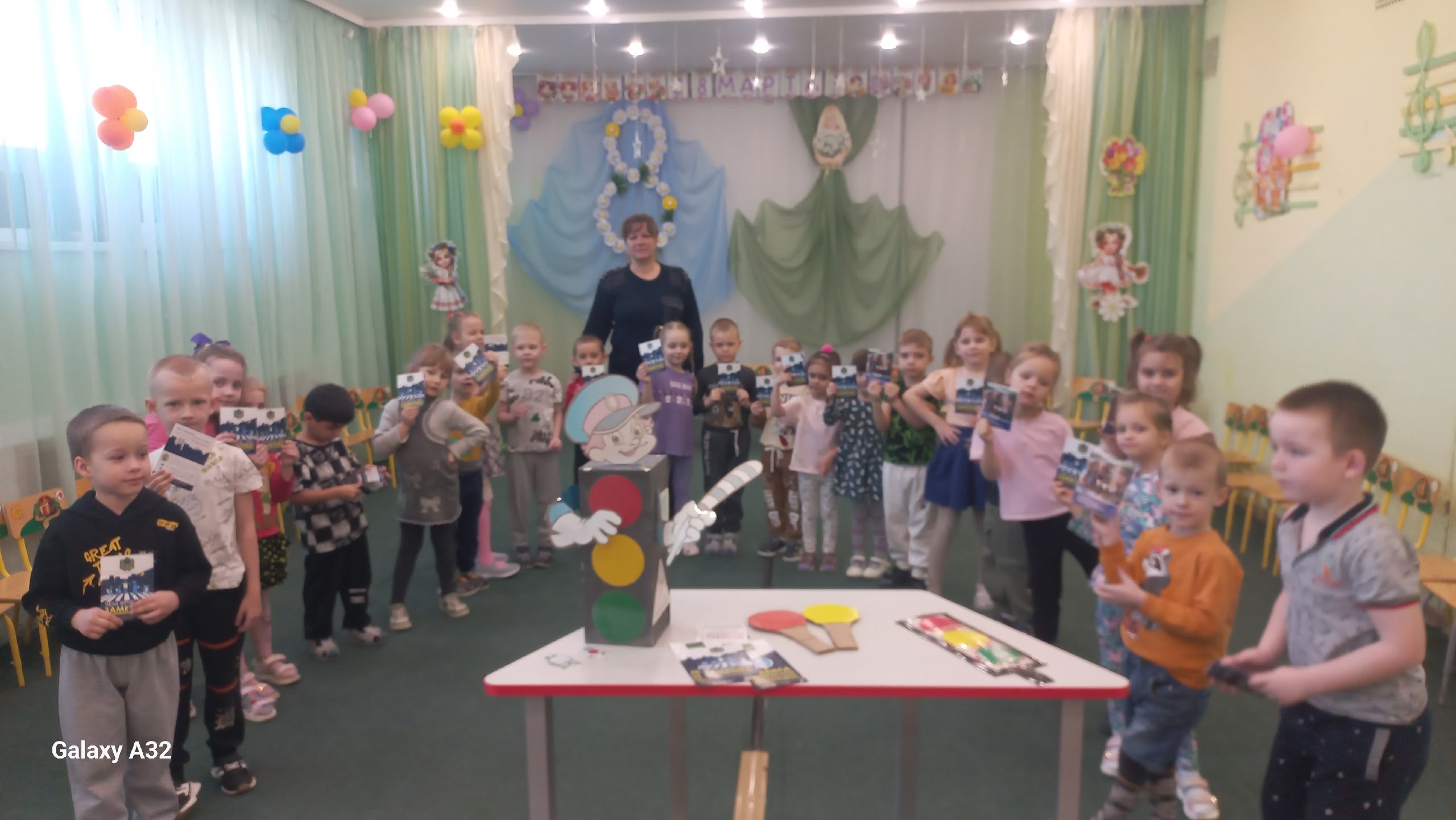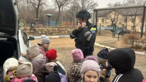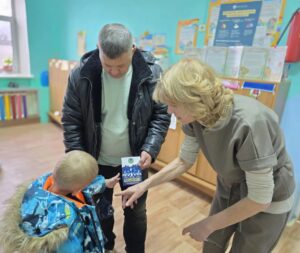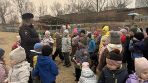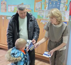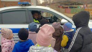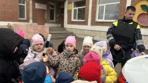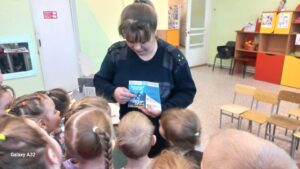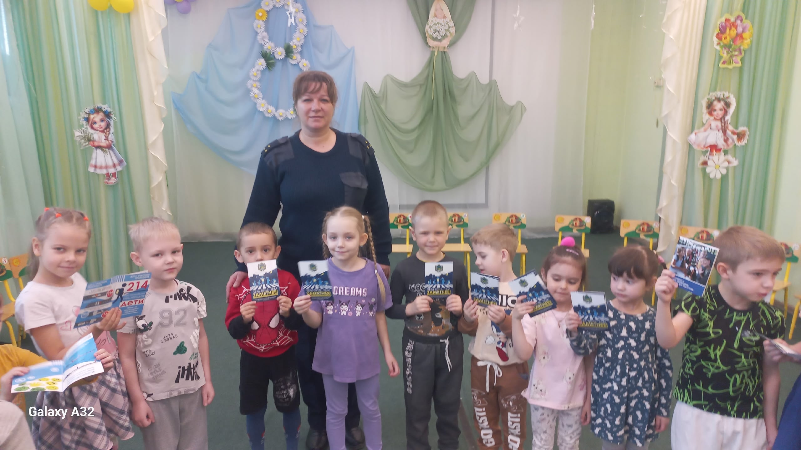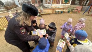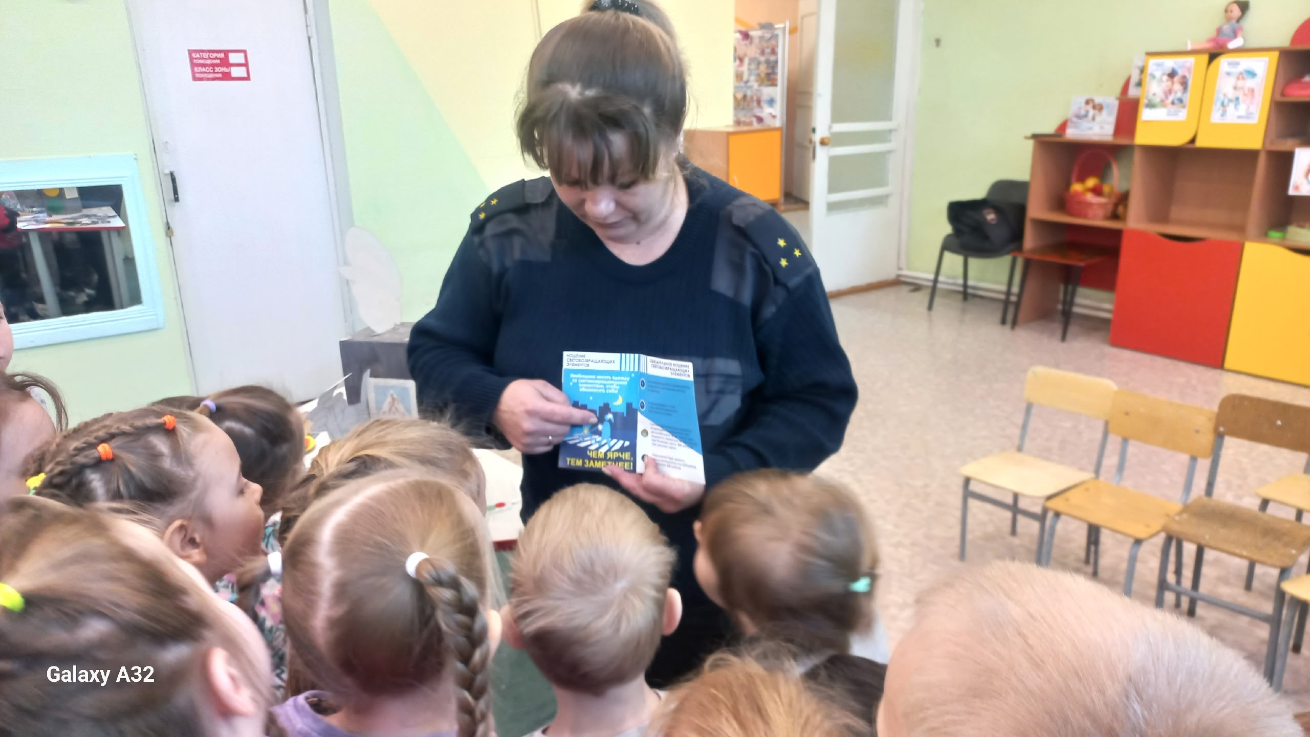 Сотрудник ГИБДД Цыганок Н.Н. вручила старшим дошкольникам буклетыпо ПДД на тему » Засветись»